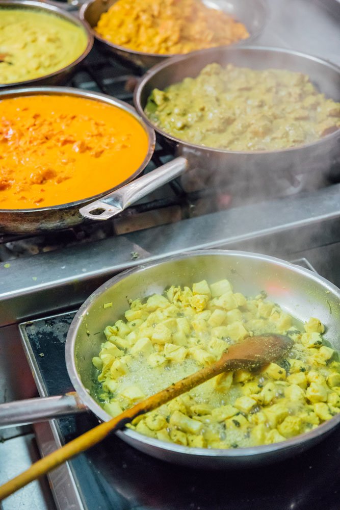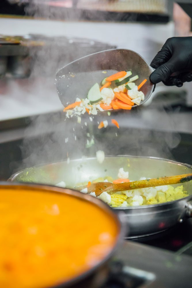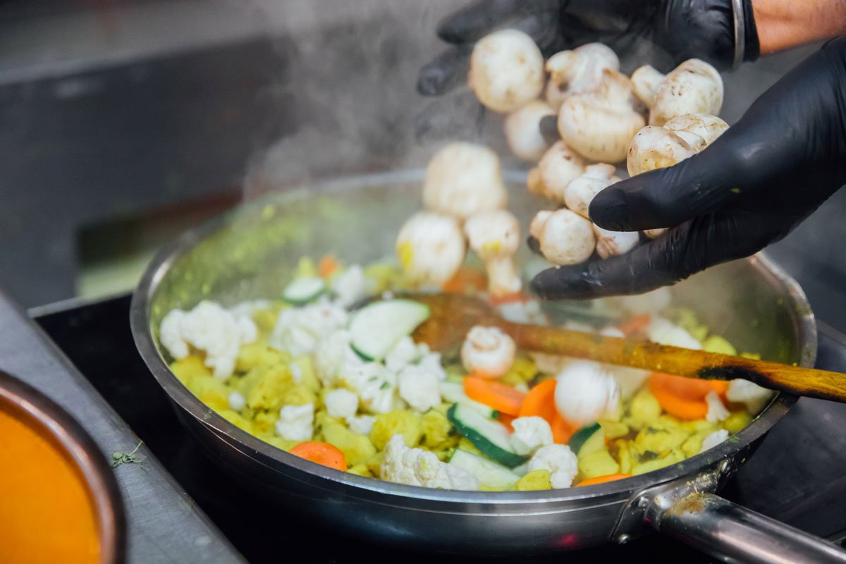 In unseren Filialen kannst du dich überzeugen, wie die Fusion aus bester indischer Kochtradition und moderner, schneller Küche gelingt. Während die Currys in unserer Hamburger Home Base sorgfältig und schonend gekocht werden, bereiten wir Gemüse und Fleisch der Menüs frisch und direkt vor deinen Augen zu.